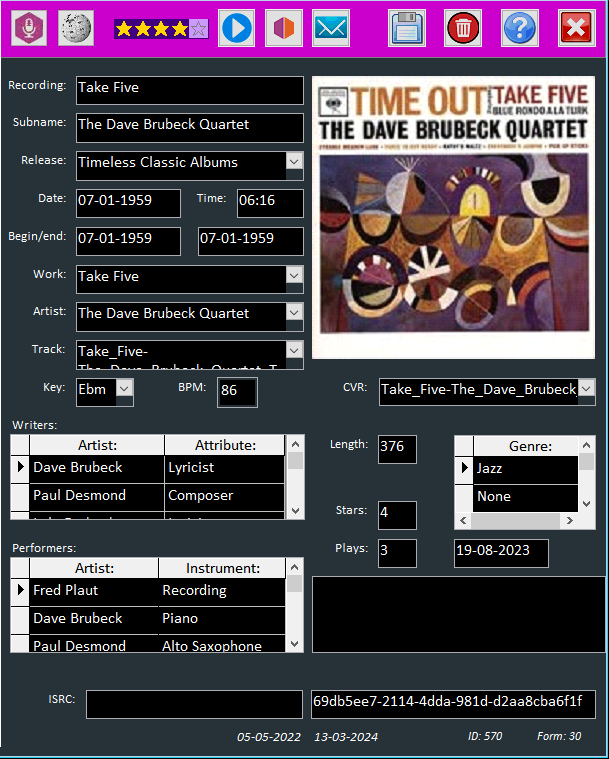 A recording is an entity in MusicBrainz which can be linked to tracks on releases. Each track must always be associated with a single recording, but a recording can be linked to any number of tracks.
