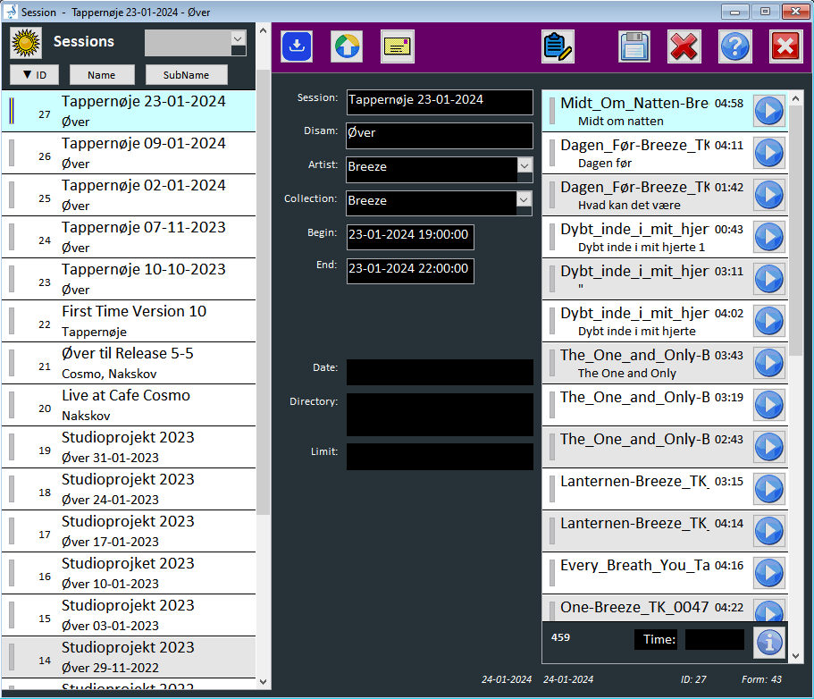 On the left we have all sessions, and on the right, we have all the takes belonging to the marked session.